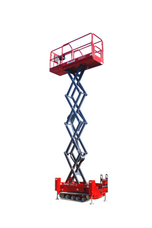 2. 履帶式剪叉型高空作業平臺這種履帶式剪刀升降機不會損壞地板或在零度轉彎時留下痕跡,這得益于它的非標記橡膠軌道,使其適合室內工地